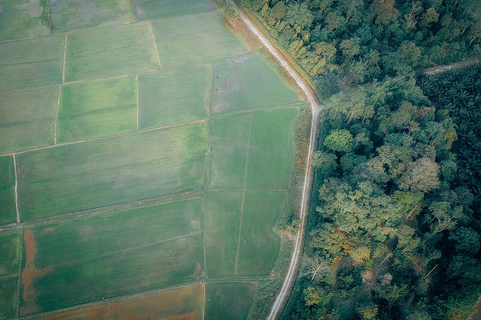 稻田和绿色森林的鸟瞰图摄影 · 免费素材图片