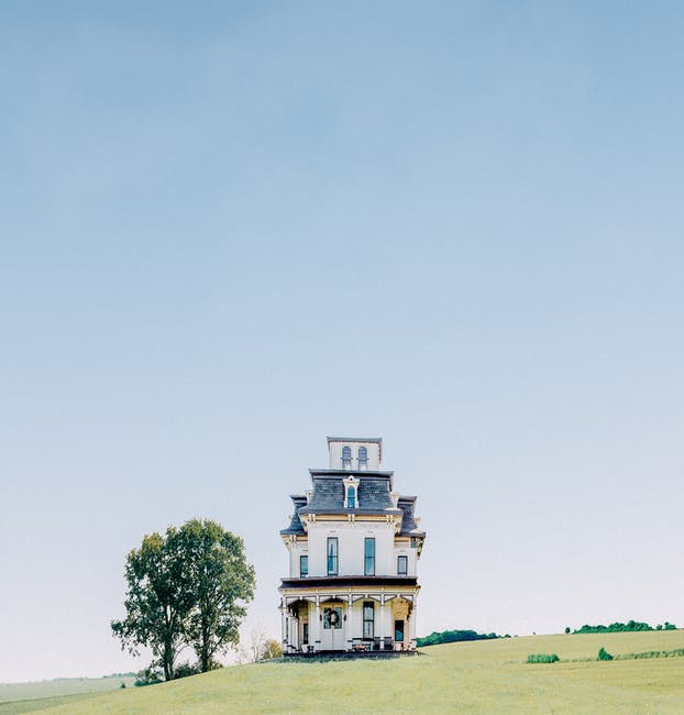 白色的混凝土建筑,在白色的天空下的绿草田 · 免费素材图片