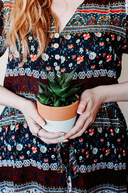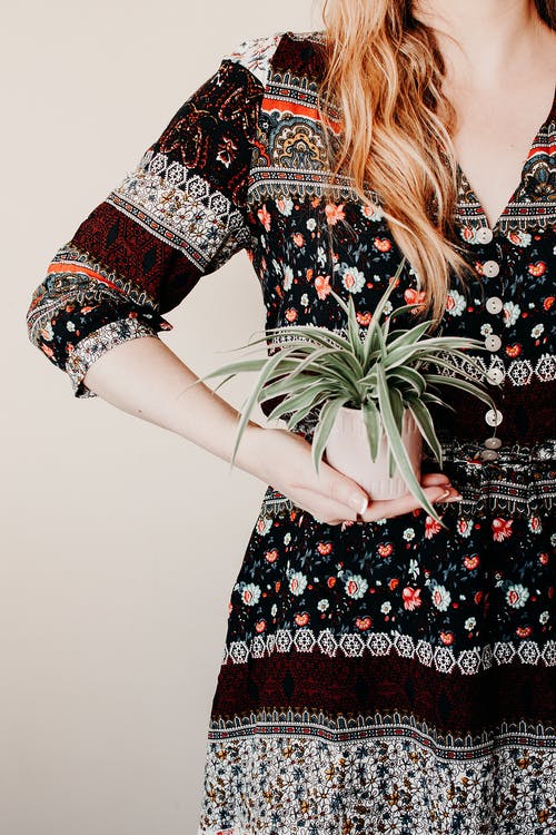 有关女人, 握住, 碎花连衣裙的免费素材图片