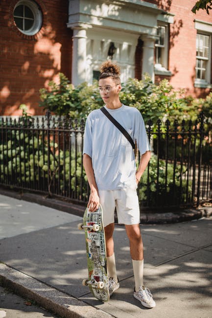 时髦的种族男性青少年放松在与滑板的路旁在晴天 · 免费素材图片