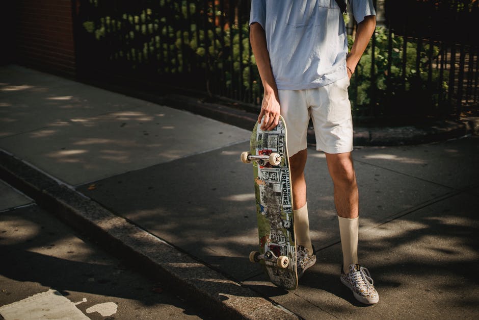 作物不露面溜冰者与滑板站在路边 · 免费素材图片
