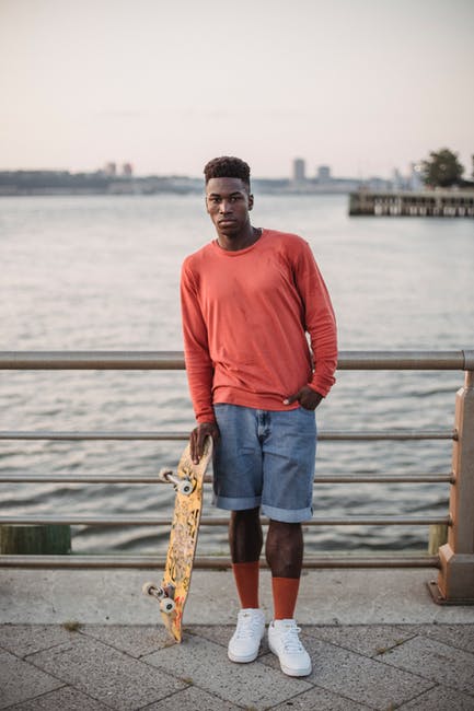 运动年轻的黑人小伙,骑滑板后在码头上冷 · 免费素材图片