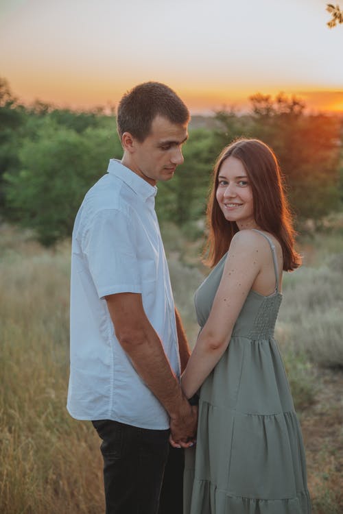拥抱在浪漫约会期间的愉快的年轻夫妇本质上在日落 · 免费素材图片