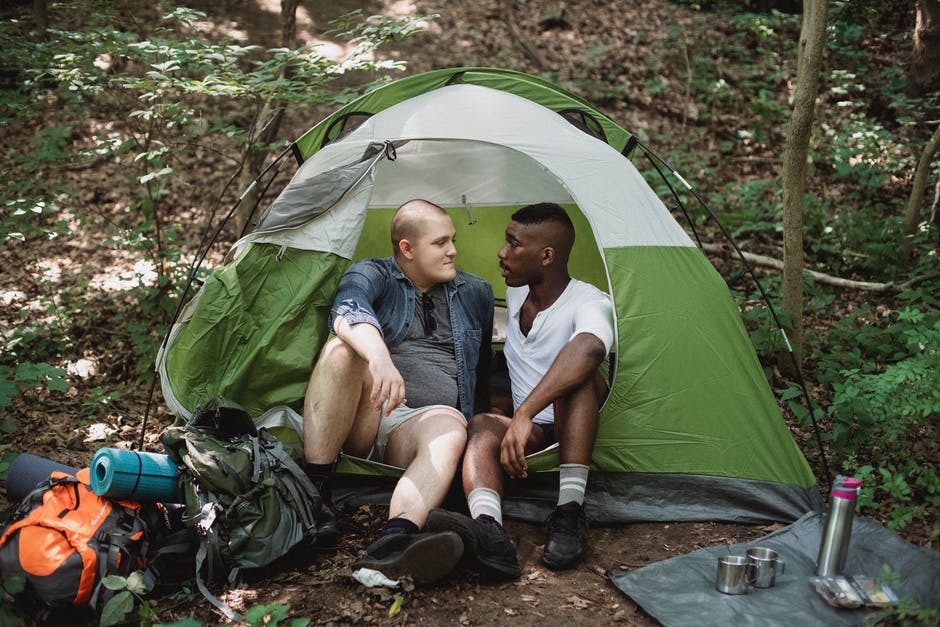不同的朋友在森林里的帐篷里休息 · 免费素材图片