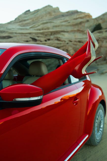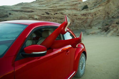 棕色沙滩上的红色和黑色车 · 免费素材图片