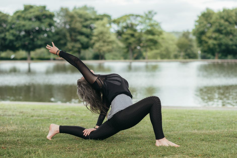 无法识别的女人在河海岸上执行新月刺姿势 · 免费素材图片