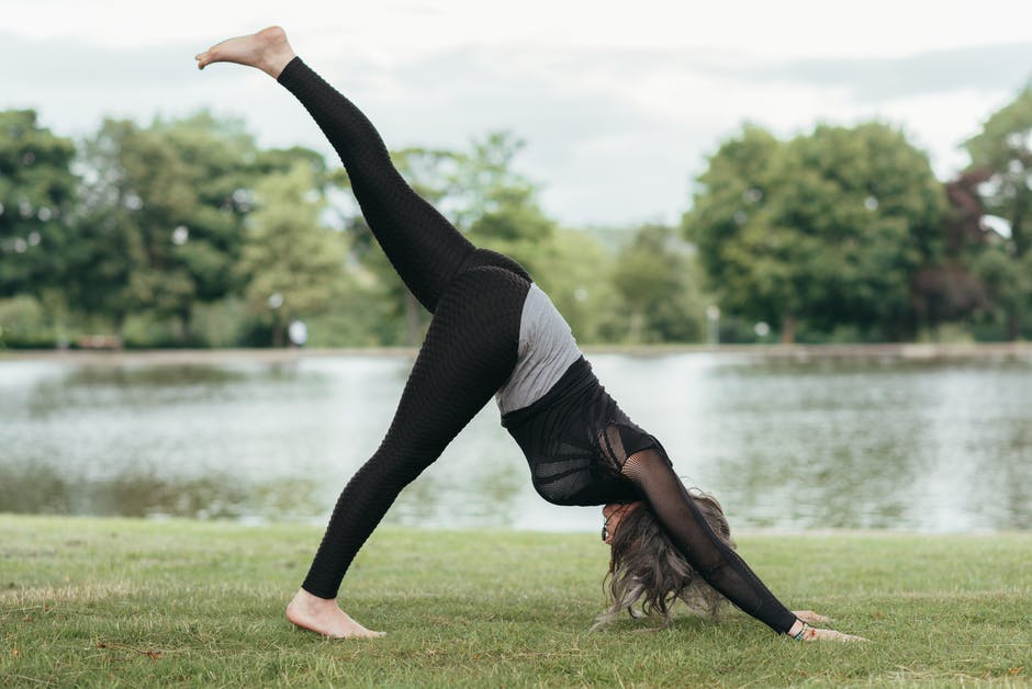 无法认出的女人,显示三个腿向下面对狗的姿势 · 免费素材图片