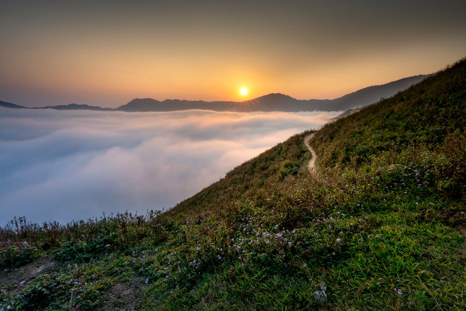 黄金时段在山脊俯瞰云海 · 免费素材图片