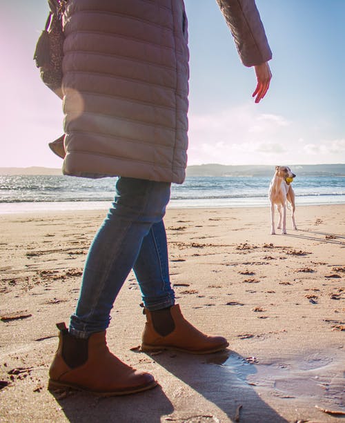 在海滩散步时穿红裙子的女人 · 免费素材图片