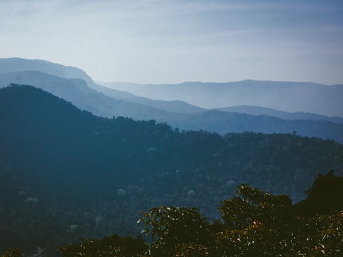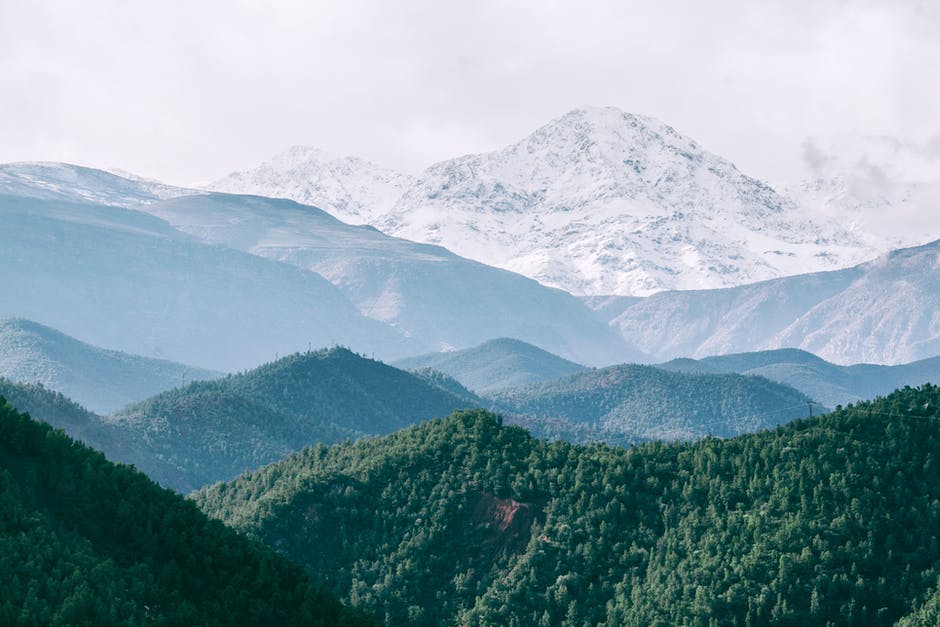 高大的雪山,对郁郁葱葱的绿树 · 免费素材图片