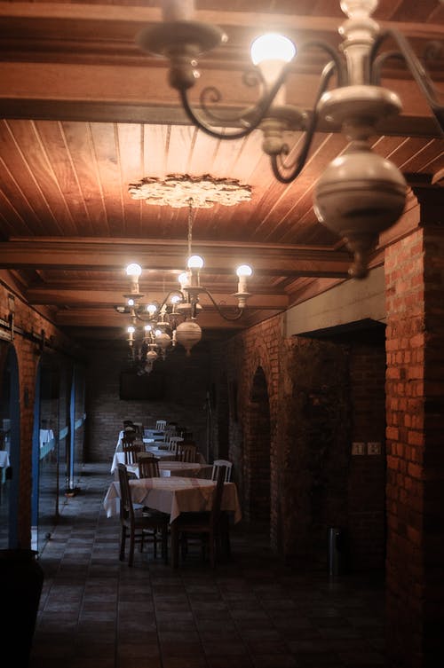 老咖啡厅室内家具和闪亮的枝形吊灯 · 免费素材图片