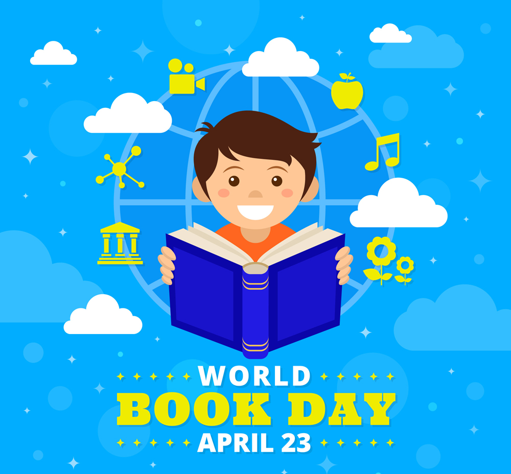 创意世界图书日阅读的男孩矢量图