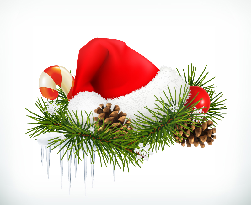 松枝上的红色圣诞帽矢量素材