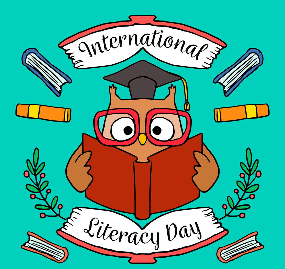 卡通国际扫盲日读书的猫头鹰矢量素材
