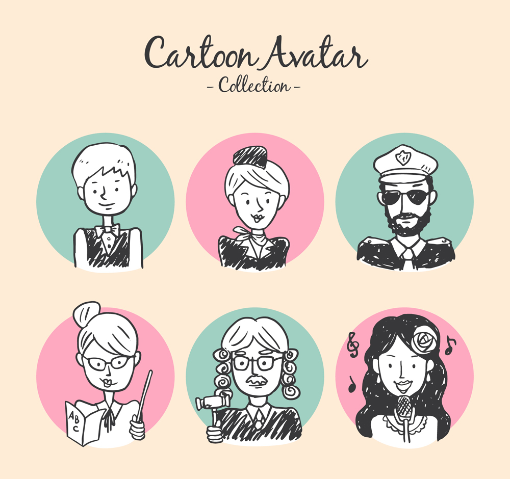 6款手绘职业人物头像矢量素材