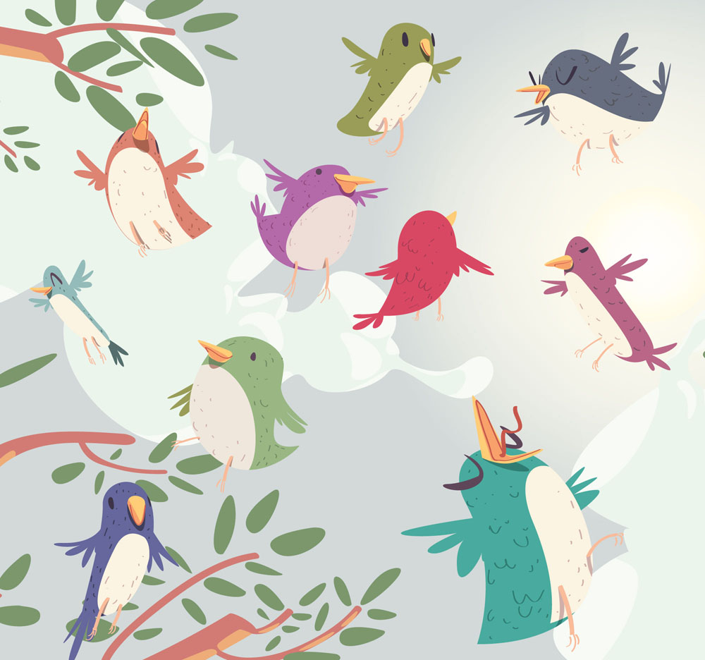 10只可爱树梢上的鸟矢量素材