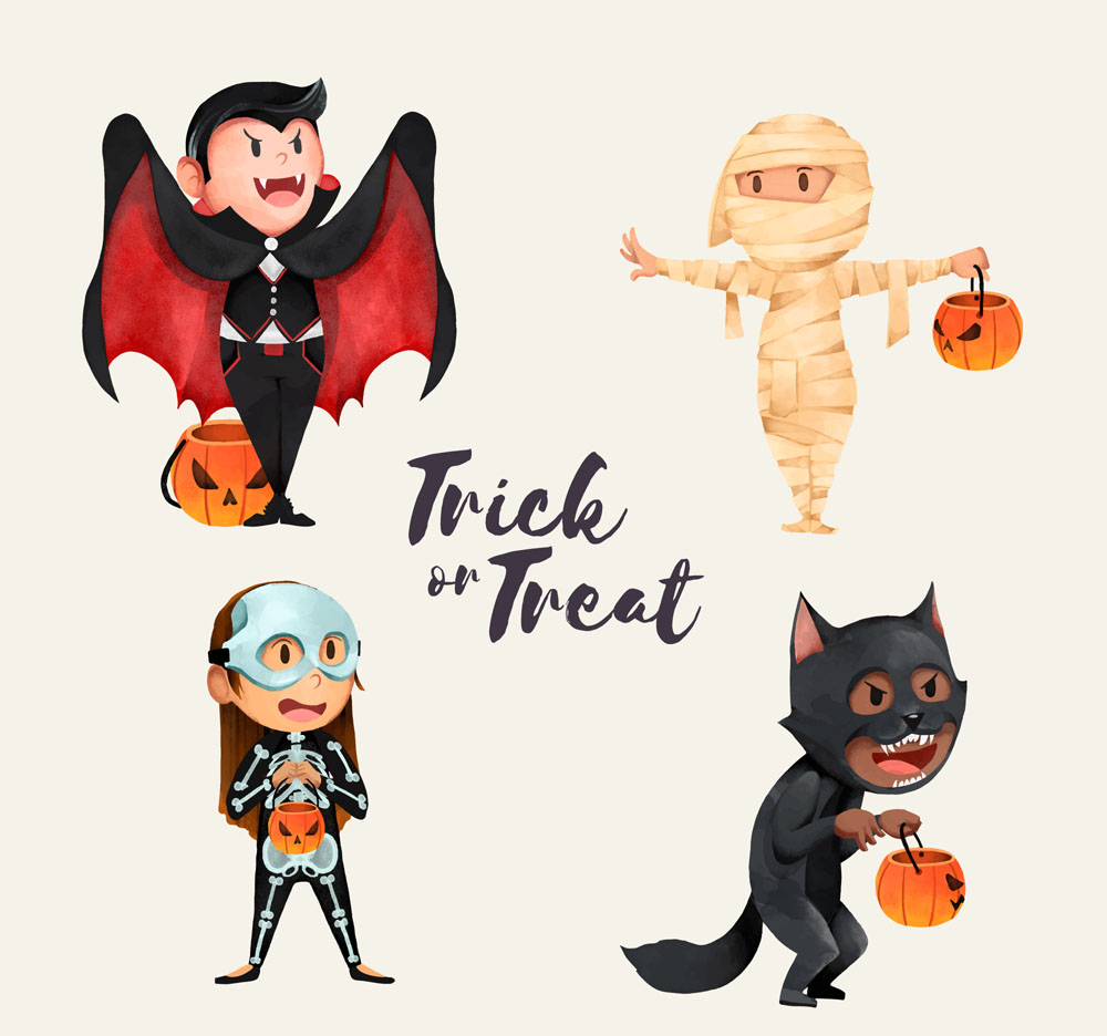 4款彩绘万圣节角色矢量素材