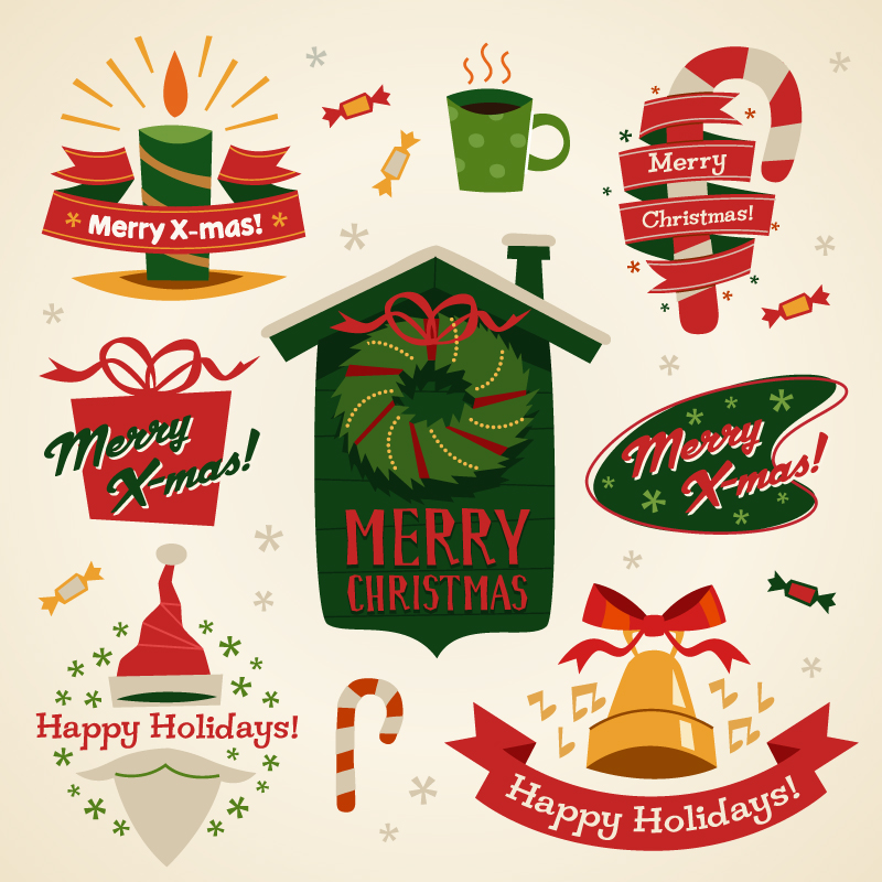 多款童趣圣诞元素矢量素材