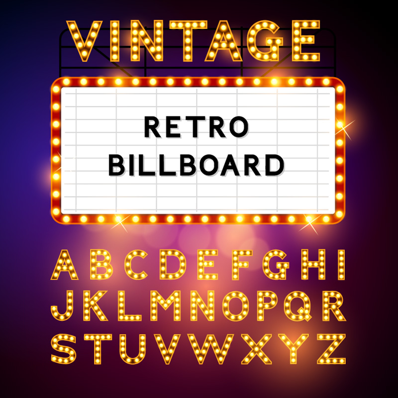 黄色霓虹灯字母矢量素材