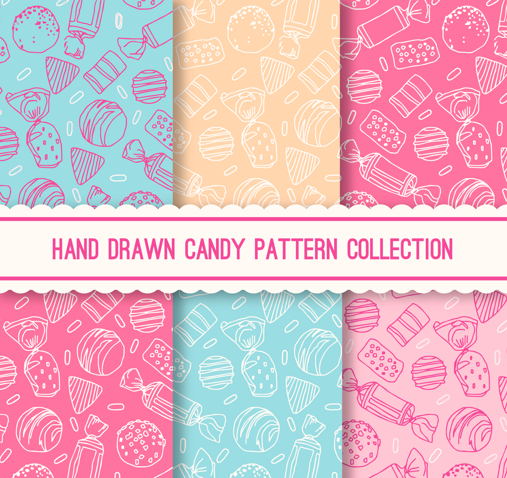 6款手绘糖果无缝背景矢量图