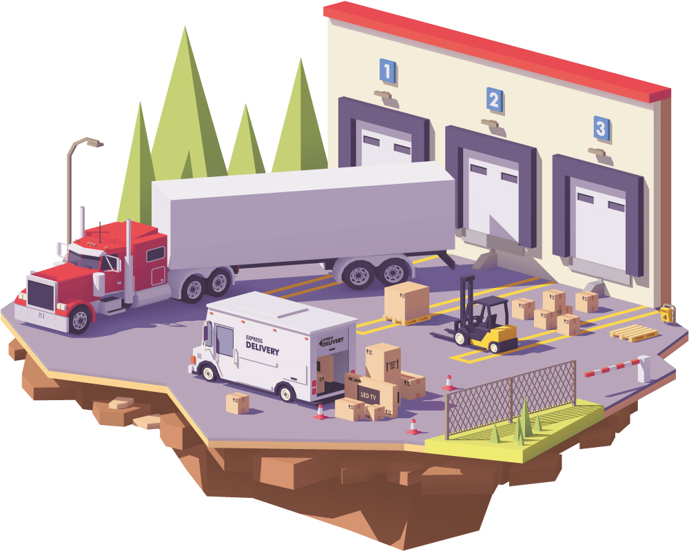 立体装卸货物的运货车和仓库矢量素材