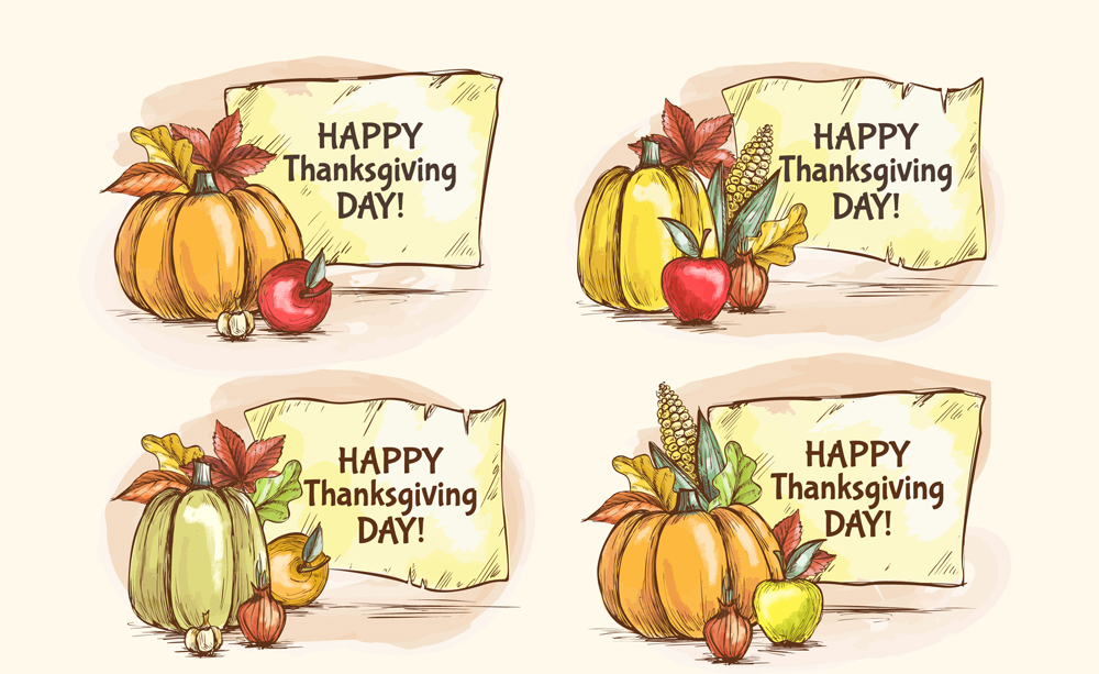 4款彩绘感恩节南瓜装饰标签矢量素材