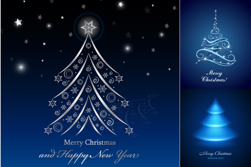 3款光效圣诞树海报矢量素材