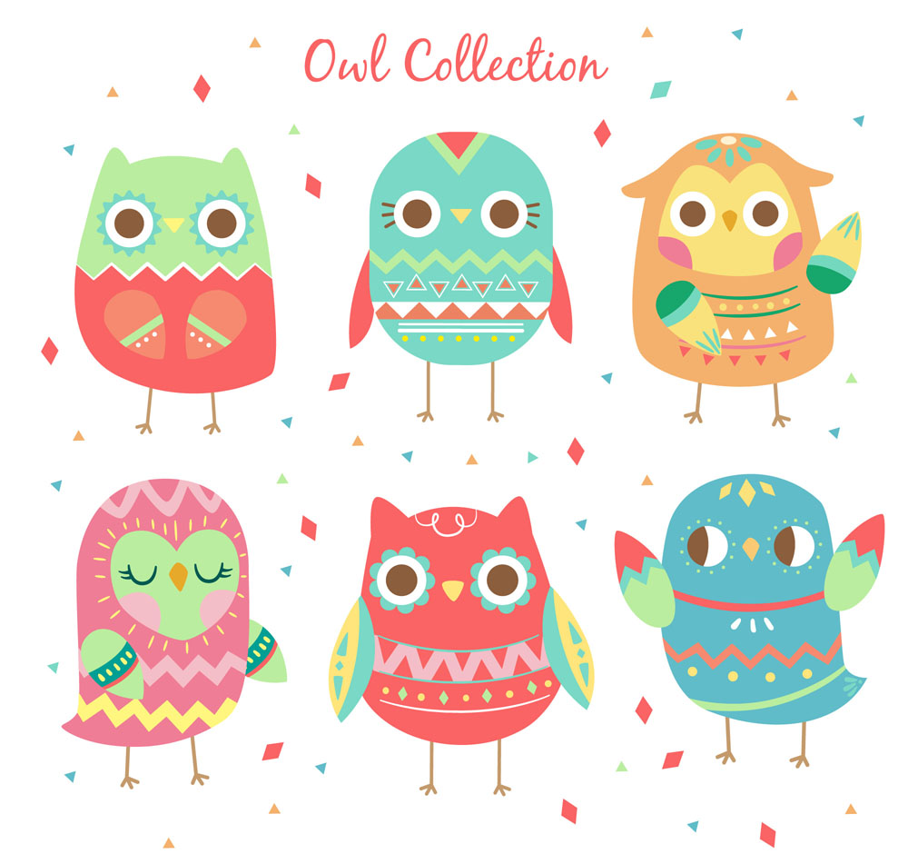 6款可爱花纹猫头鹰矢量素材
