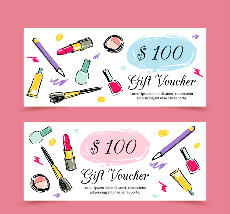 2款彩绘化妆品代金券矢量图