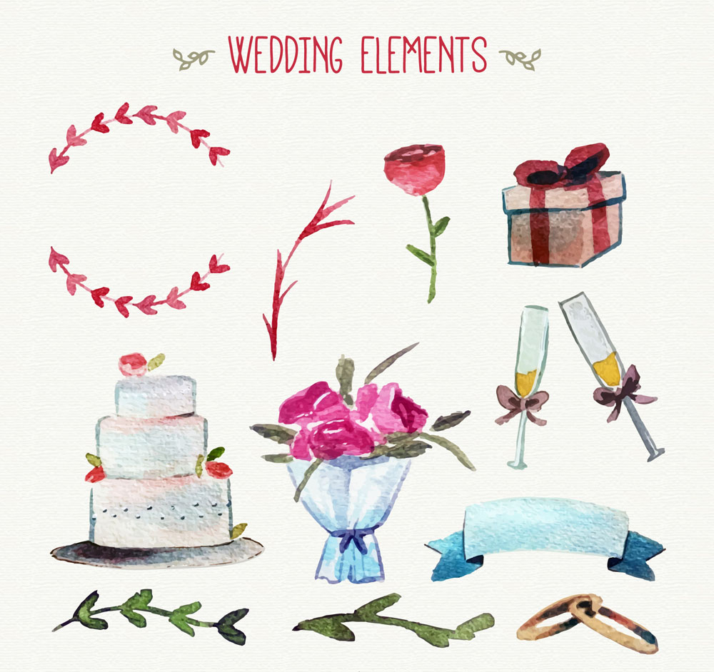 12款水彩绘婚礼物品矢量素材