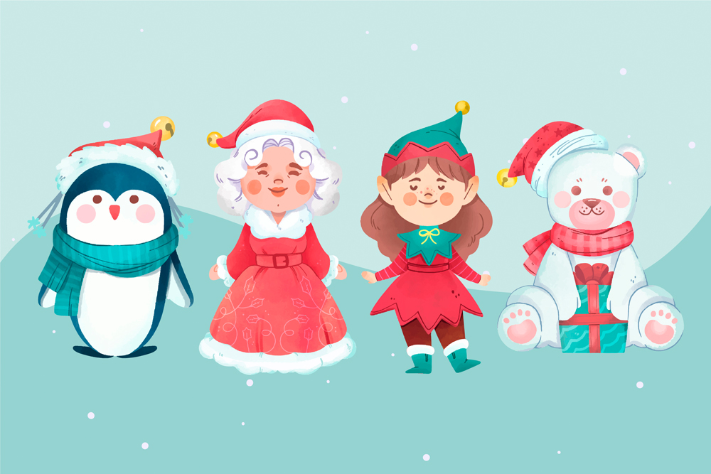 4款彩绘微笑圣诞节角色矢量素材
