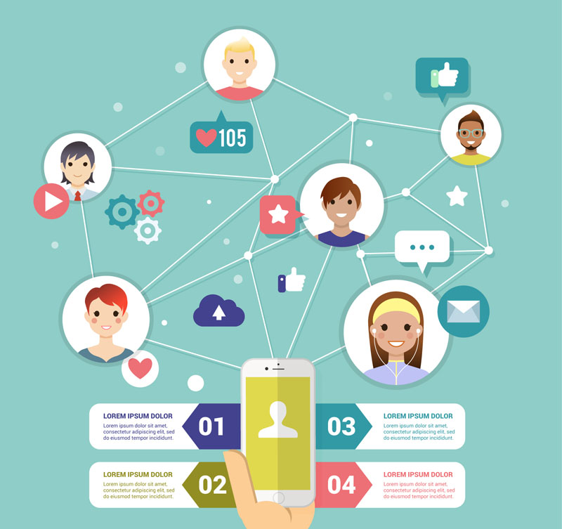 创意手机社交网络信息图矢量素材