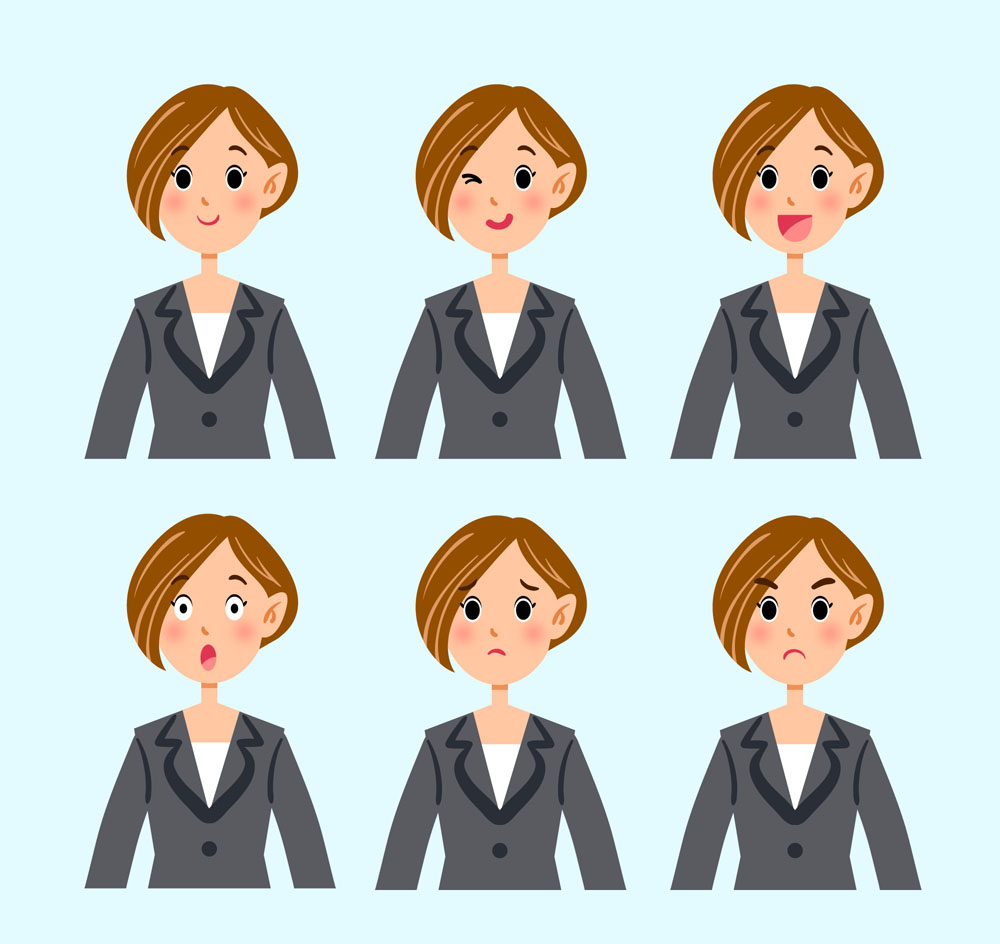 6款短发商务女子表情矢量素材