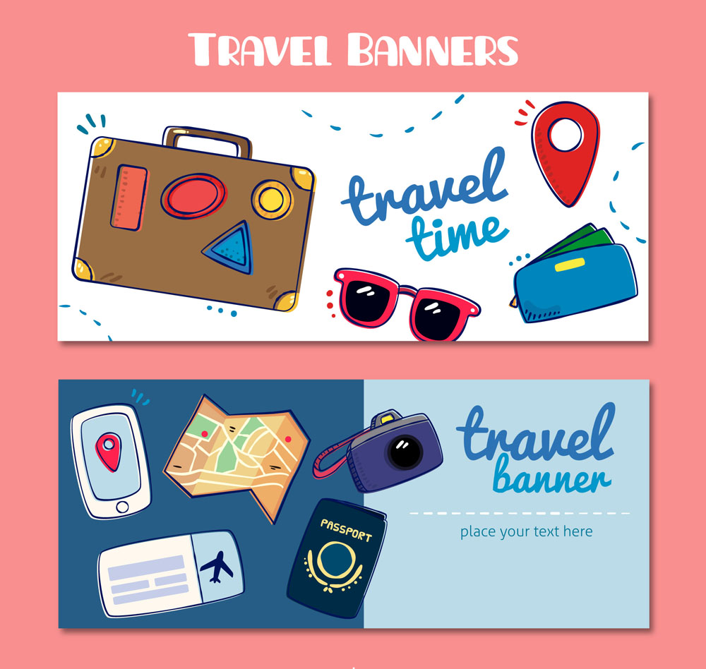 2款彩绘旅行物品banner矢量素材
