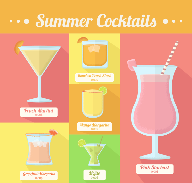 6款彩色夏季鸡尾酒矢量素材