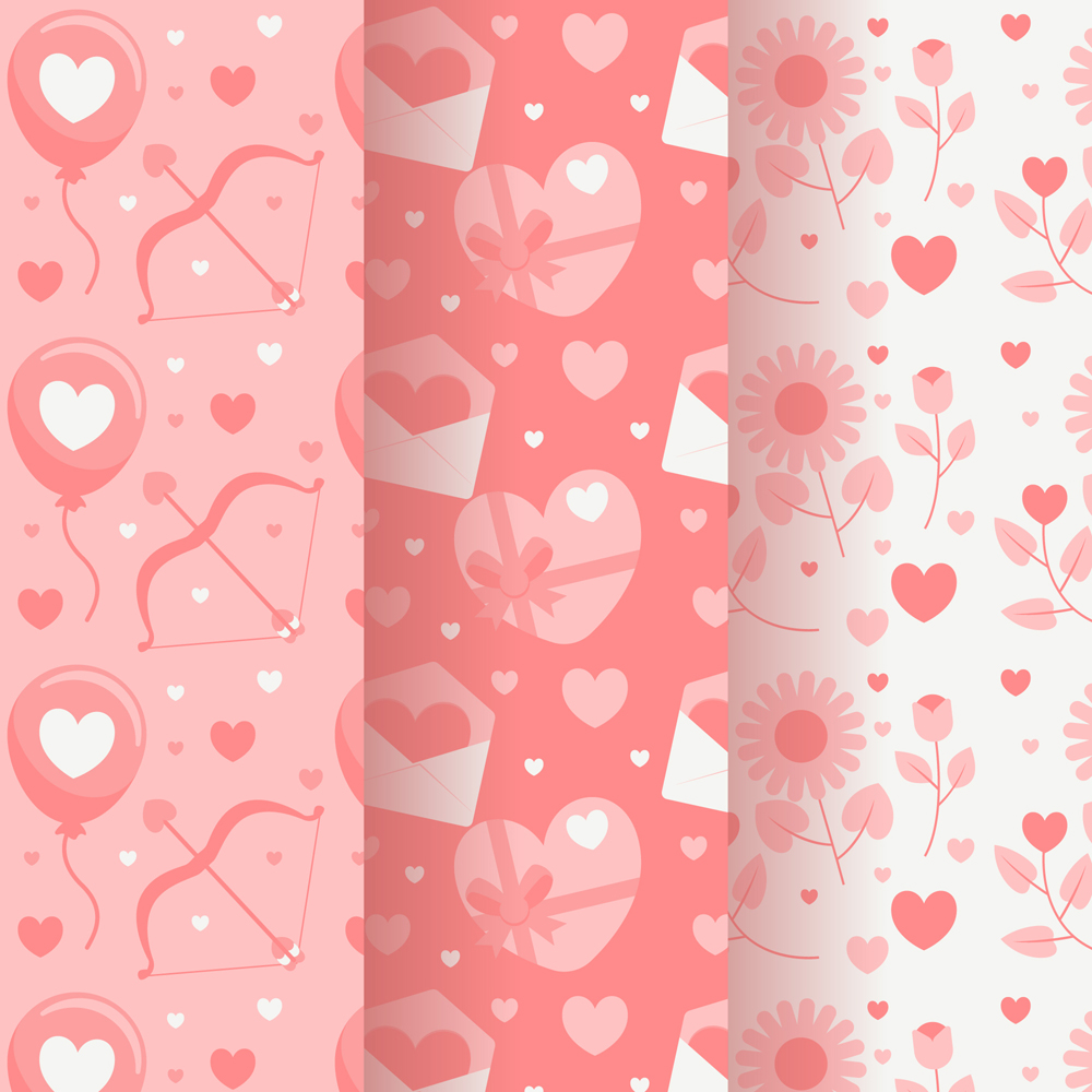 3款创意爱心元素无缝背景矢量图
