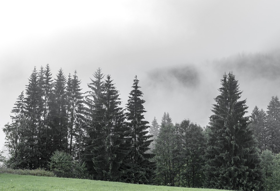 树木 冷杉 多雾路段 - 上的免费照片