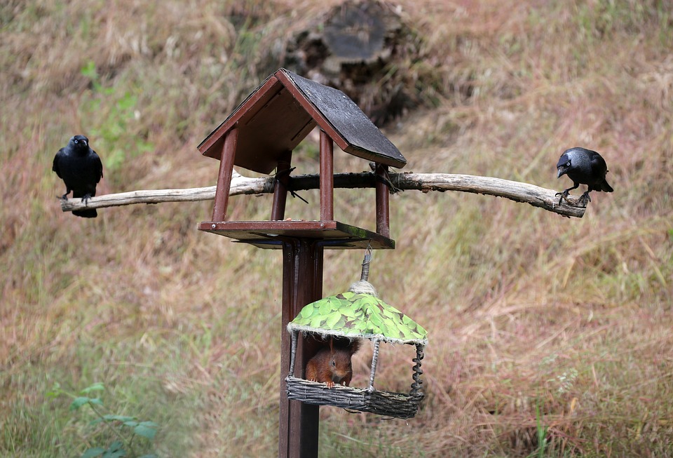 寒鸦 松鼠 喂鸟器 - 上的免费照片