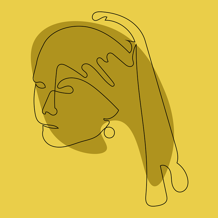 艺术 女孩珍珠耳环 线描 - 免费矢量图形