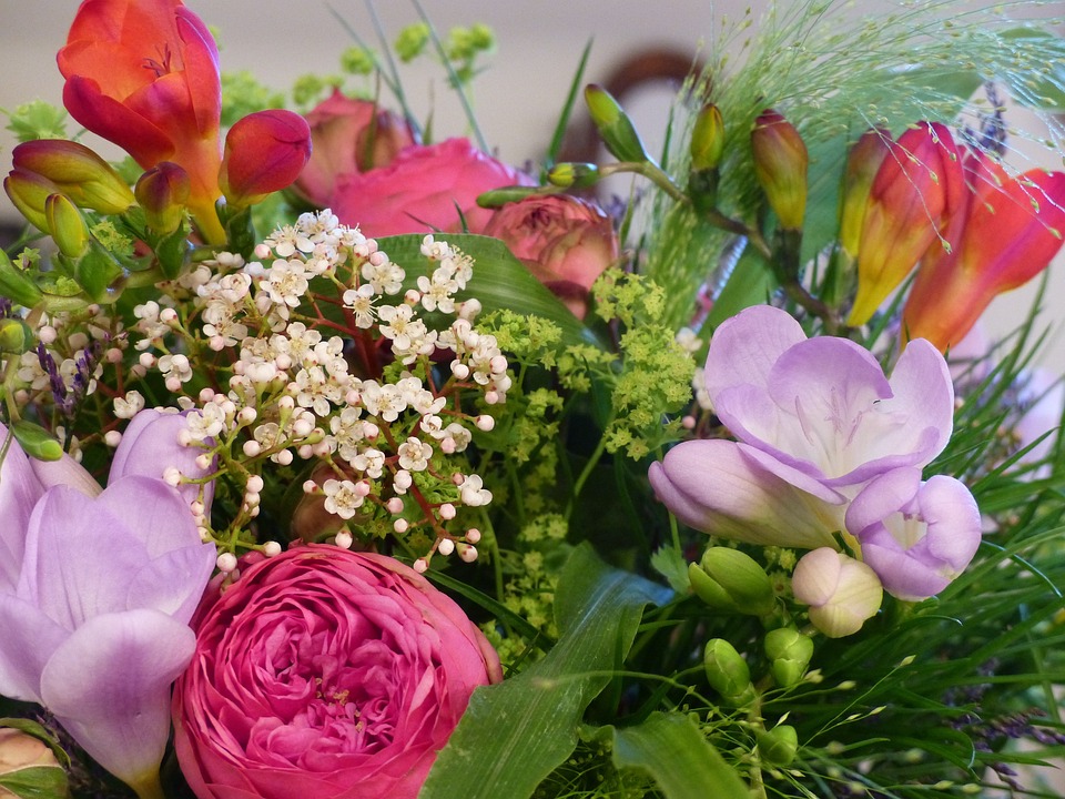 一束花朵 小苍兰 玫瑰 - 上的免费照片