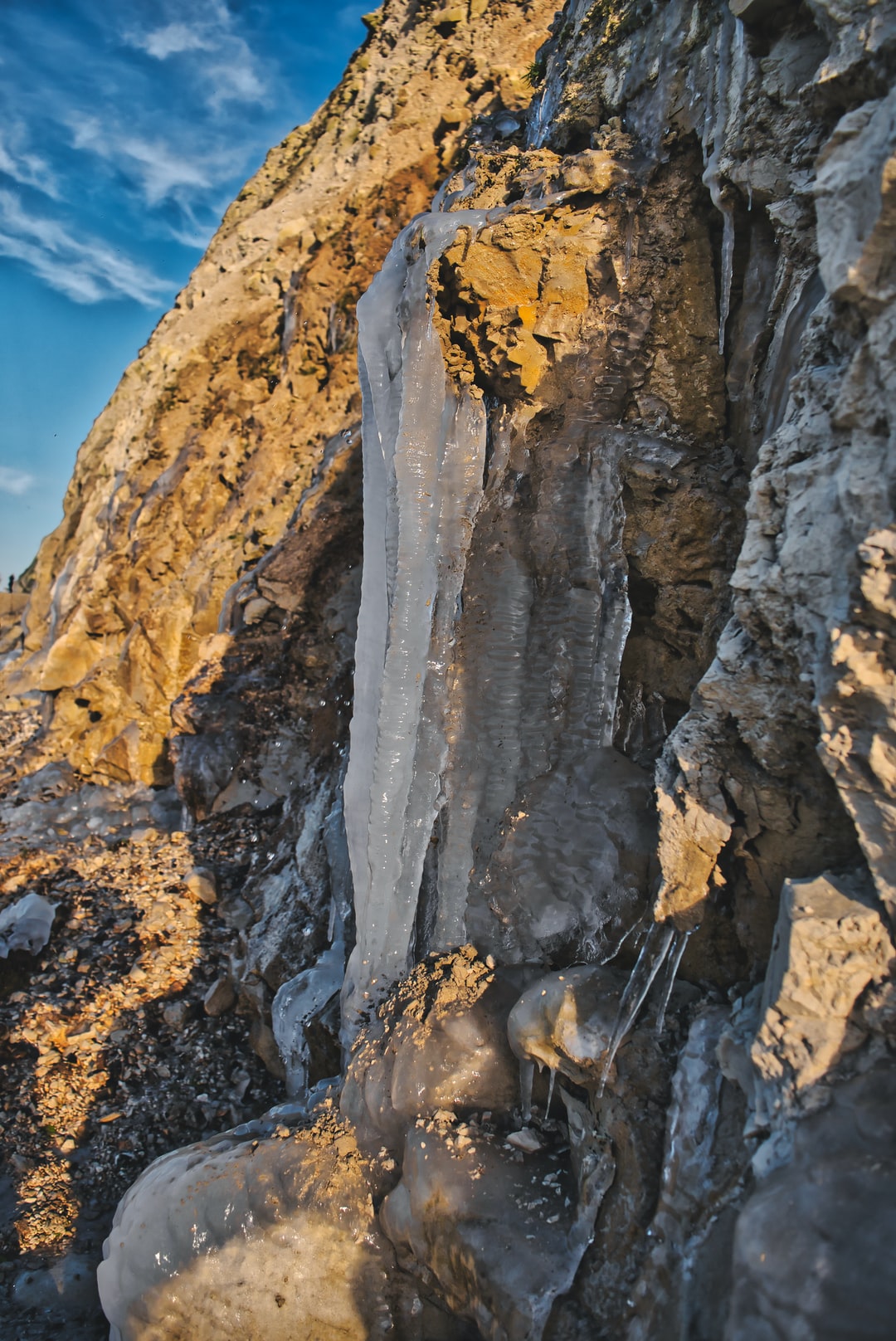 棕色和灰色岩层下蓝天白天