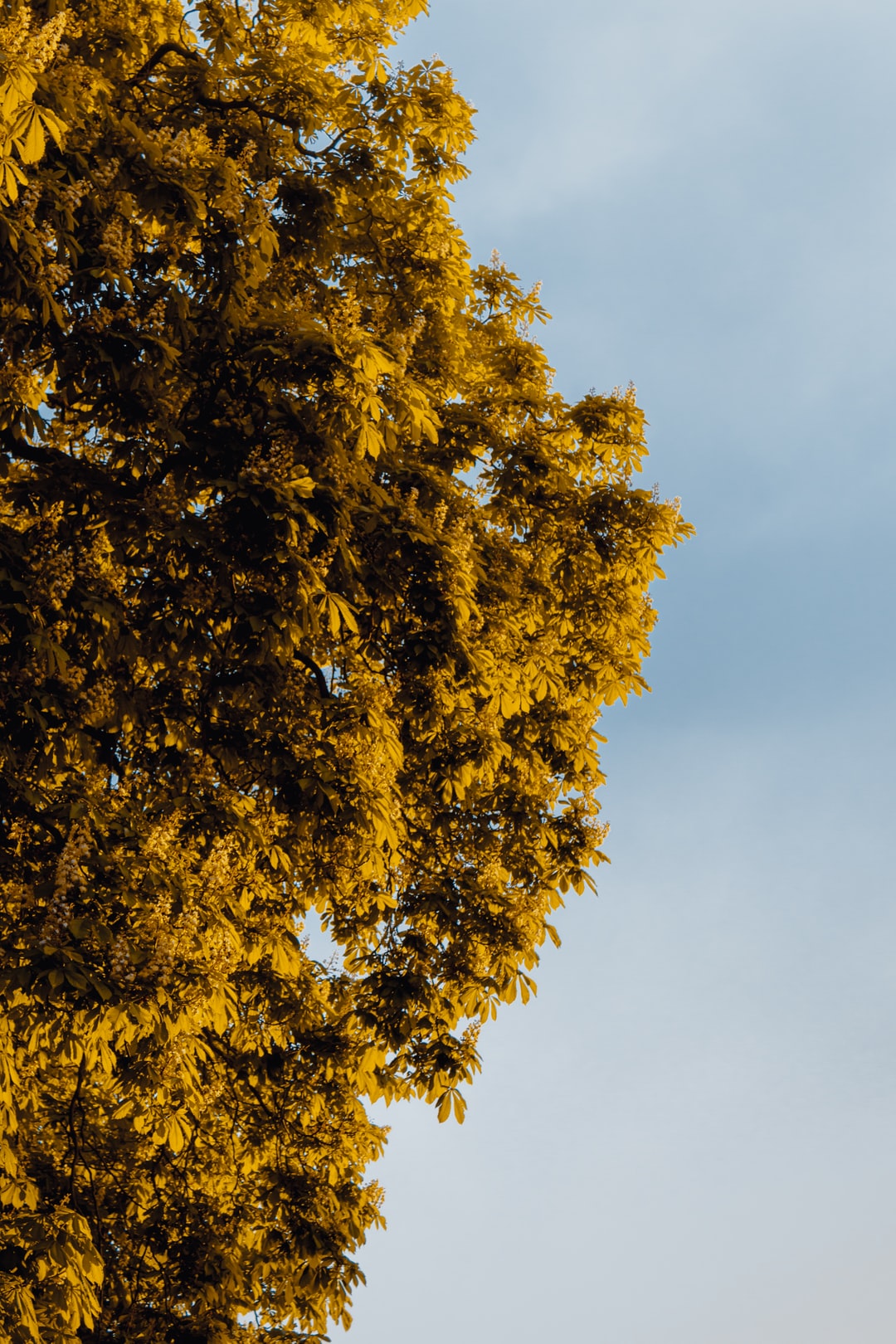 白云下的黄叶树