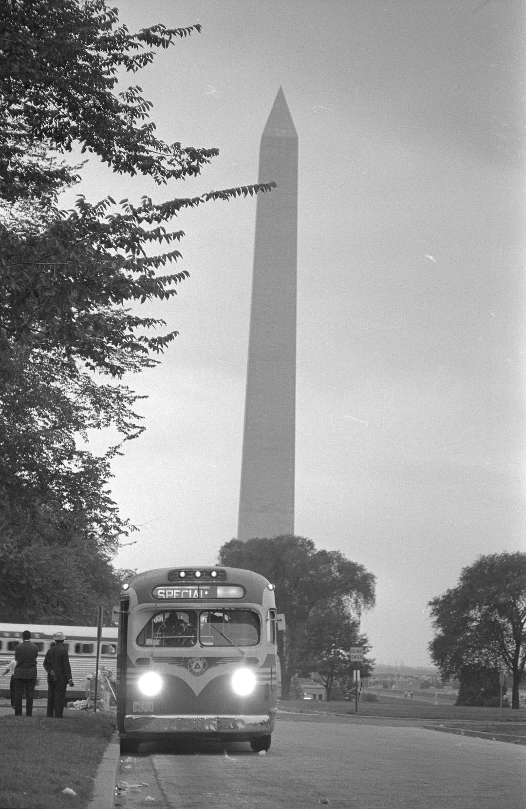 在华盛顿游行之后,巴士离开华盛顿纪念碑附近