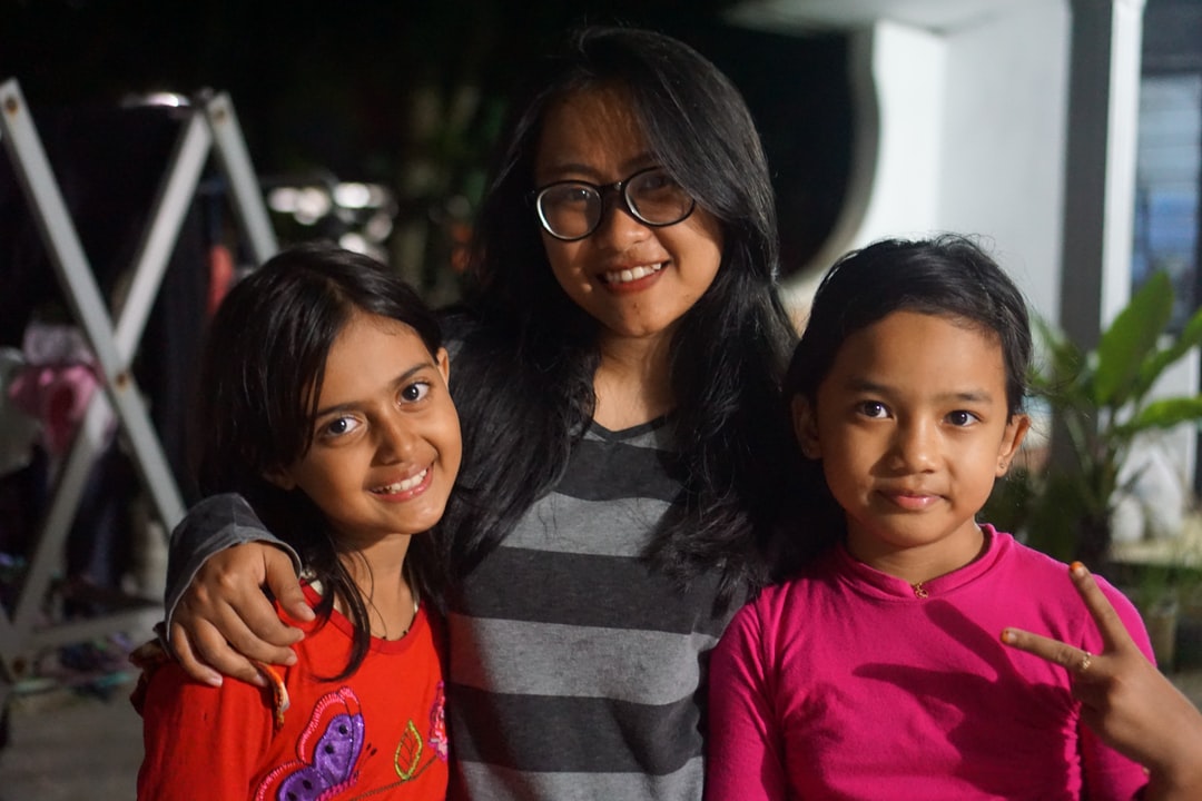 穿着灰色和黑色条纹衬衫的女人和穿着粉色圆领衬衫的女孩在一起