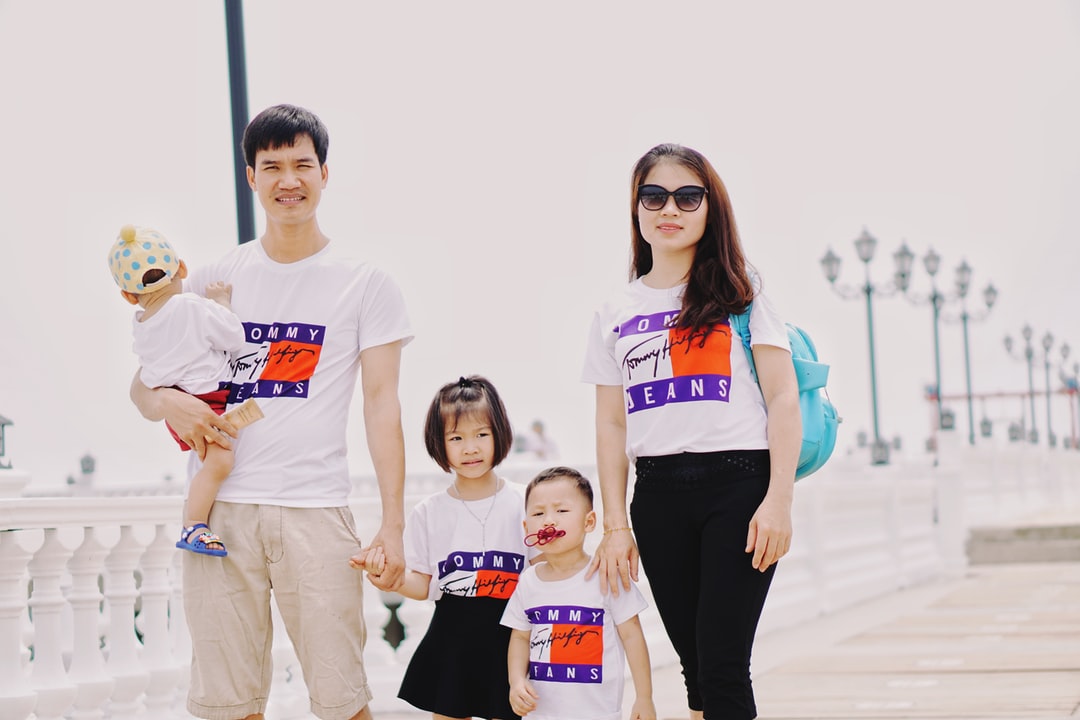 The family stood on the outdoor during the day
