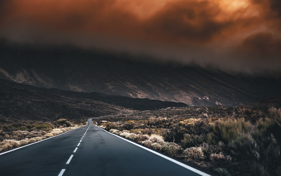 在白天黑沥青道路积雪山脉附近