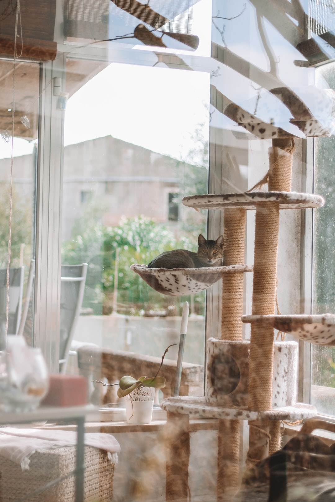 透明玻璃鱼缸在桌子上