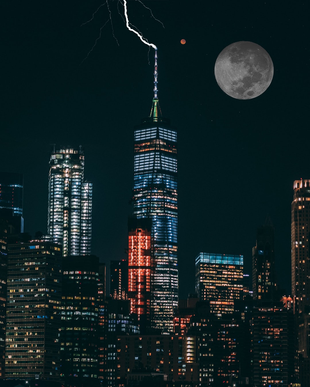 full moon over high rise buildings