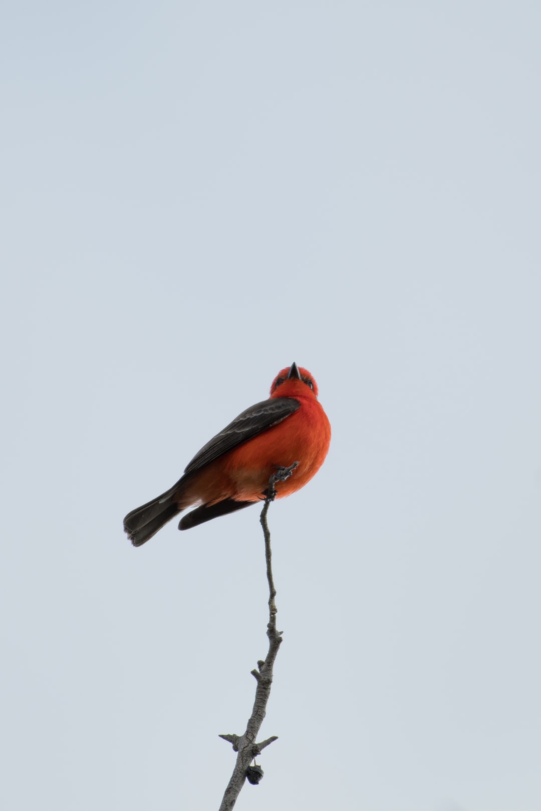橘色和黑色的鸟栖息在树枝上