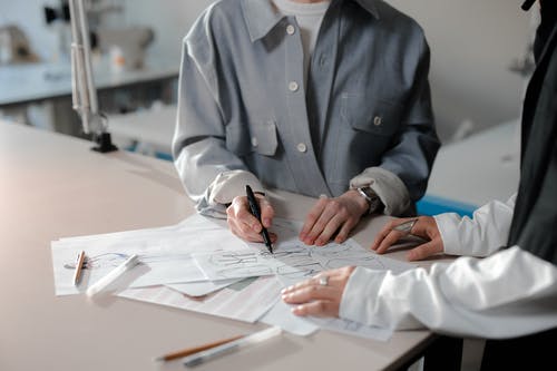 黑色铅笔旁边的白色卡片上棕色针织纺织